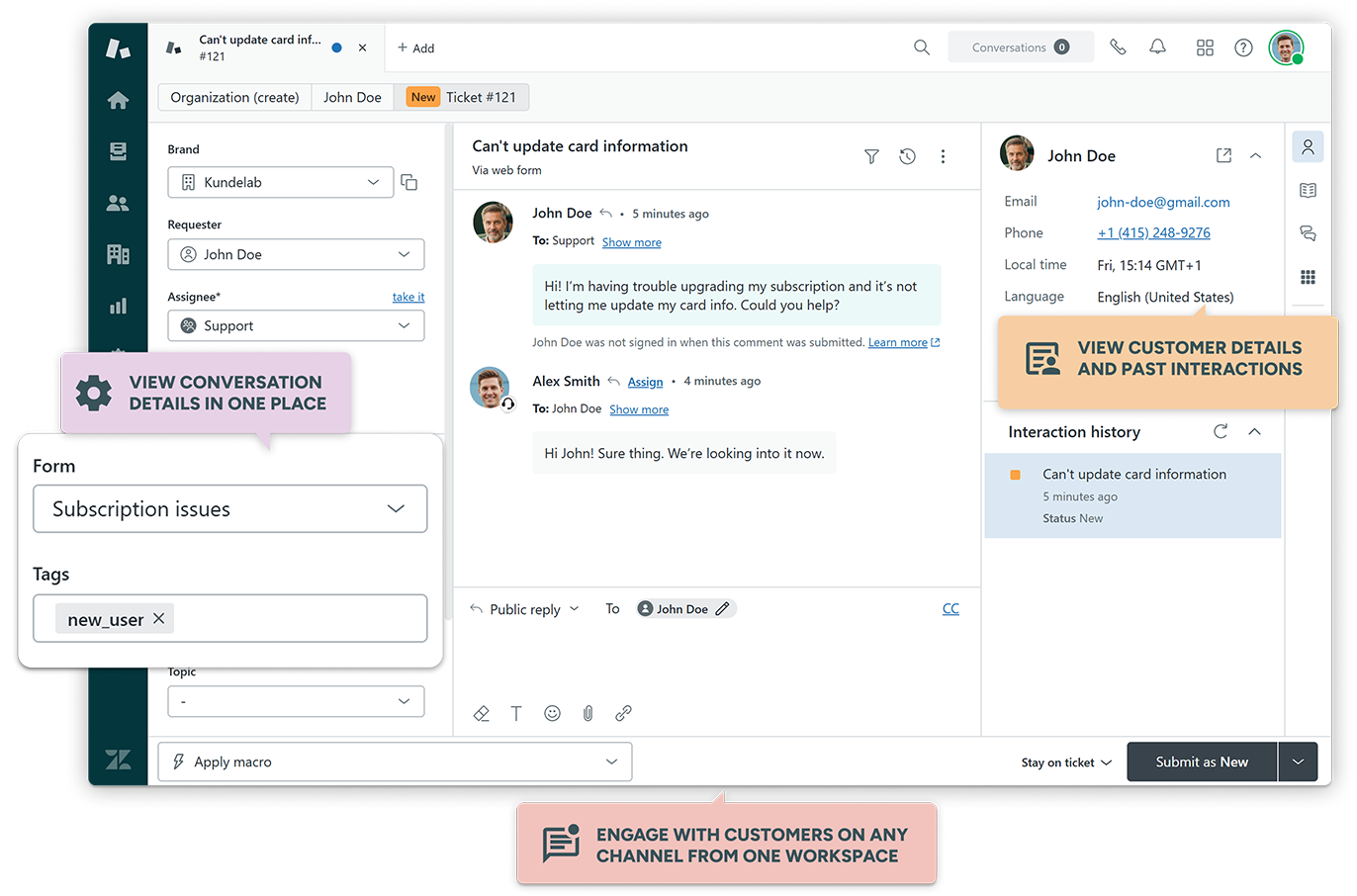 Are you in search of a customer service system and want information about Zendesk? We're here to help. Learn more about the Zendesk Support Suite or reach out to us for a consultation.
